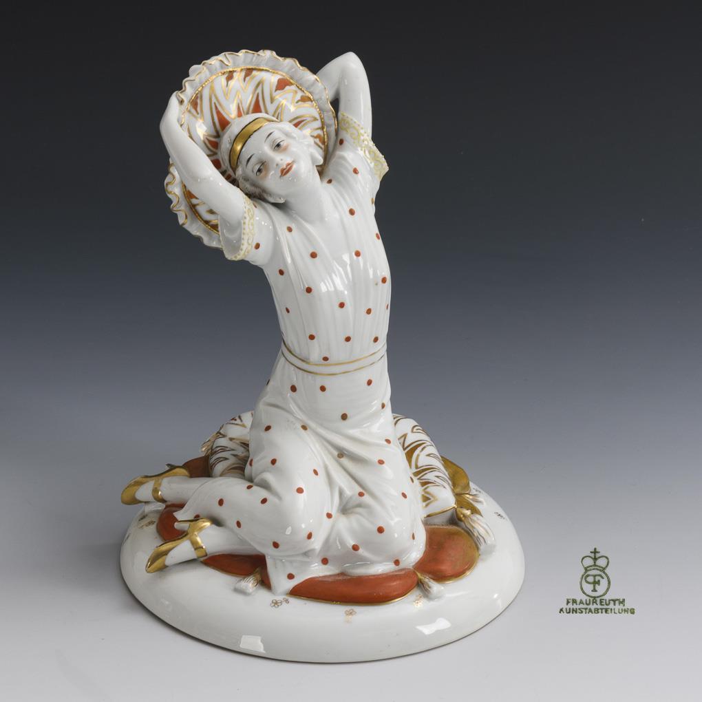 In Korallenrot und Gelb bemalt, goldstaffiert. H 20,5 cm.