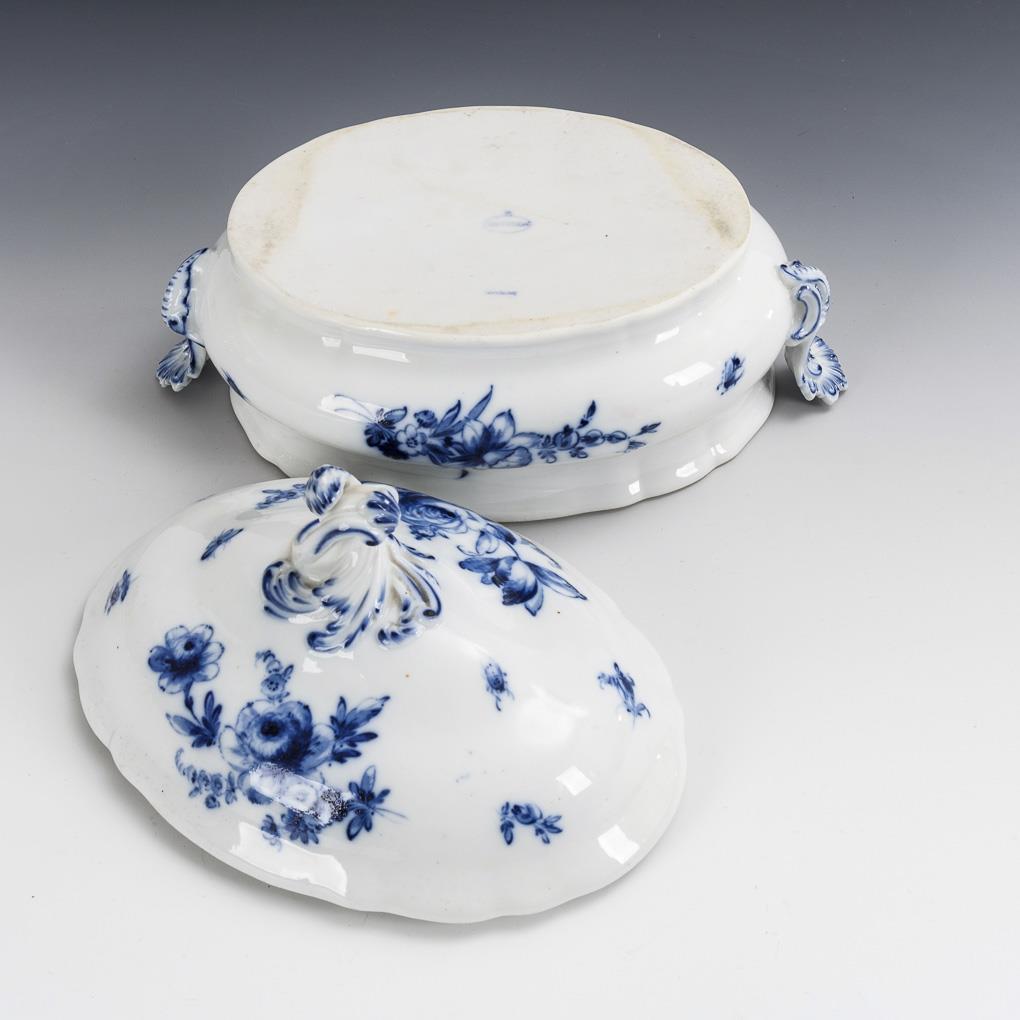 Unterglasurblaue Blumen- und Insektenmalerei. L 28 cm.