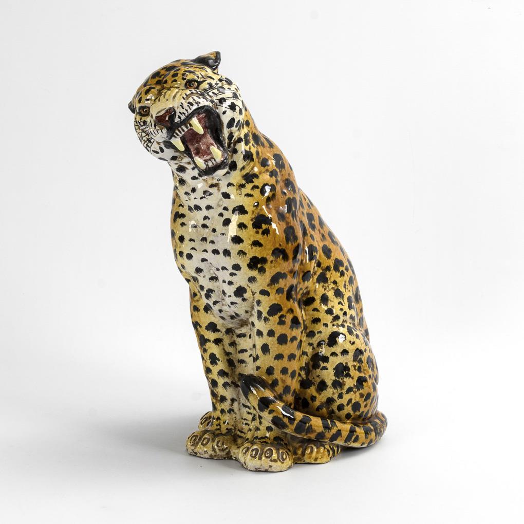 Große Plastik eines Leoparden.