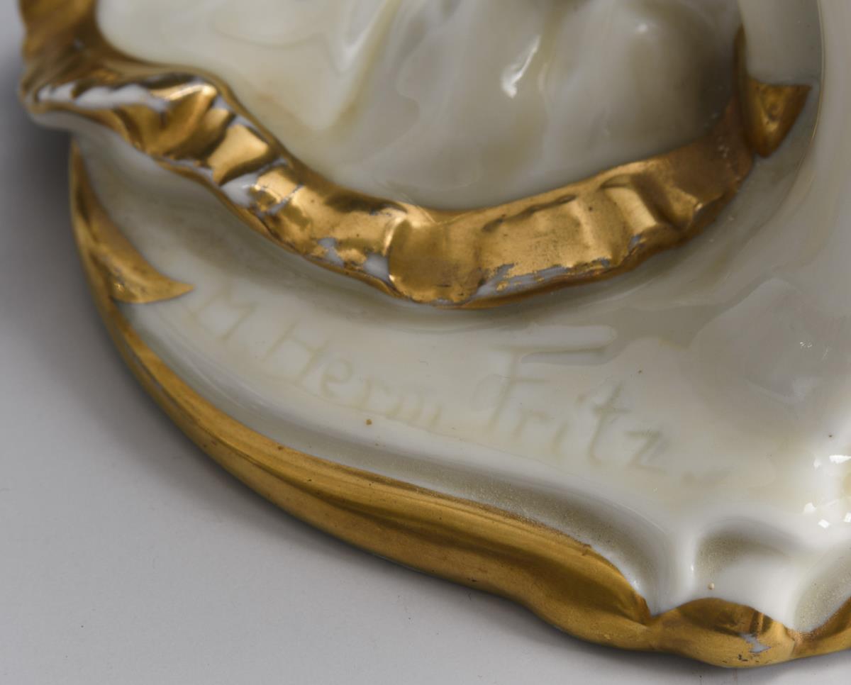 Elfenbeinfarben mit Goldstaffage. H 24 cm.