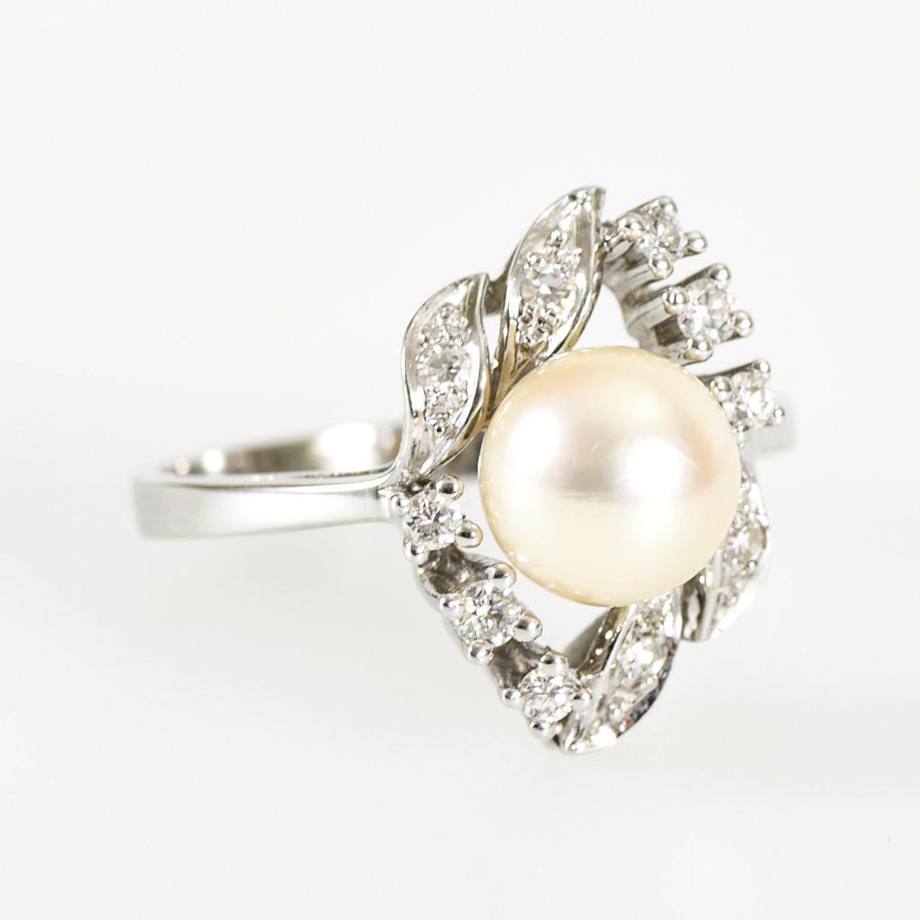 Ring mit Zuchtperle, Brillanten und Diamanten.