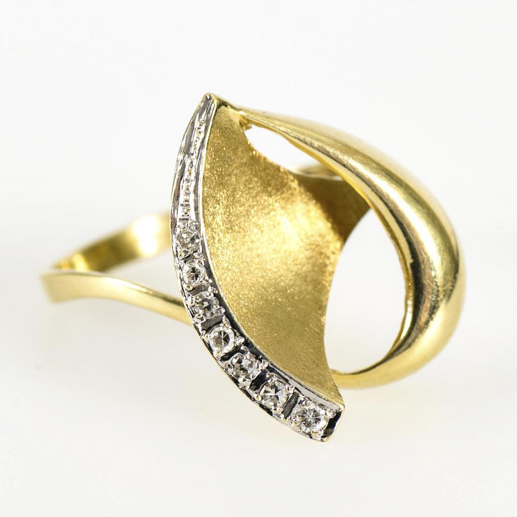 Gelbgold 585 gestempelt. Punze ungedeutet. Diamanten ges. 0,10 ct. Ringgröße 59. 4,4 g.