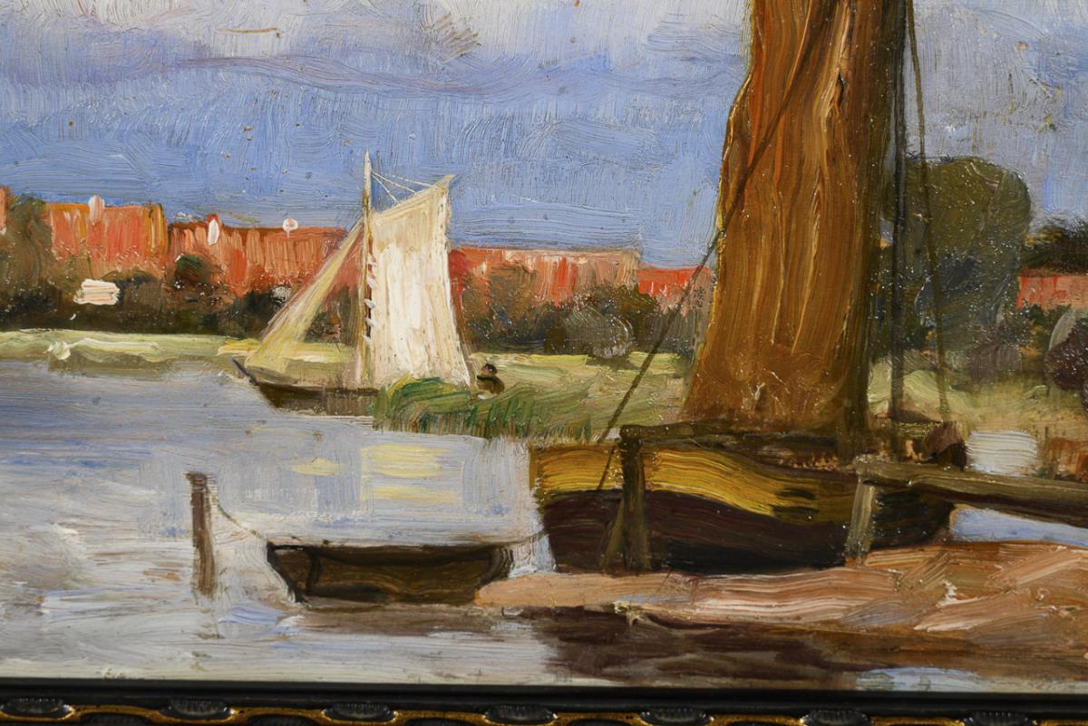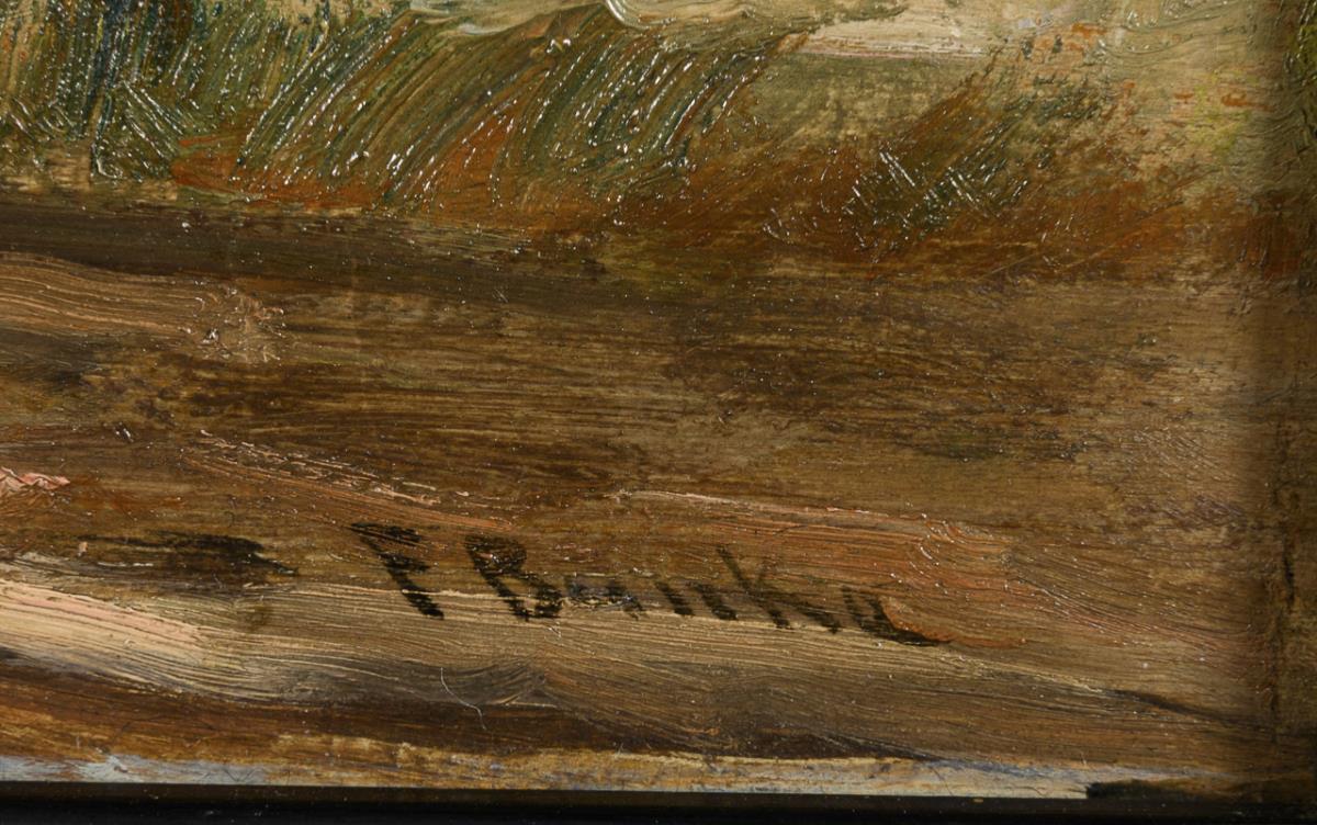 Öl/Holz. Rechts unten signiert, verso bezeichnet/betitelt.