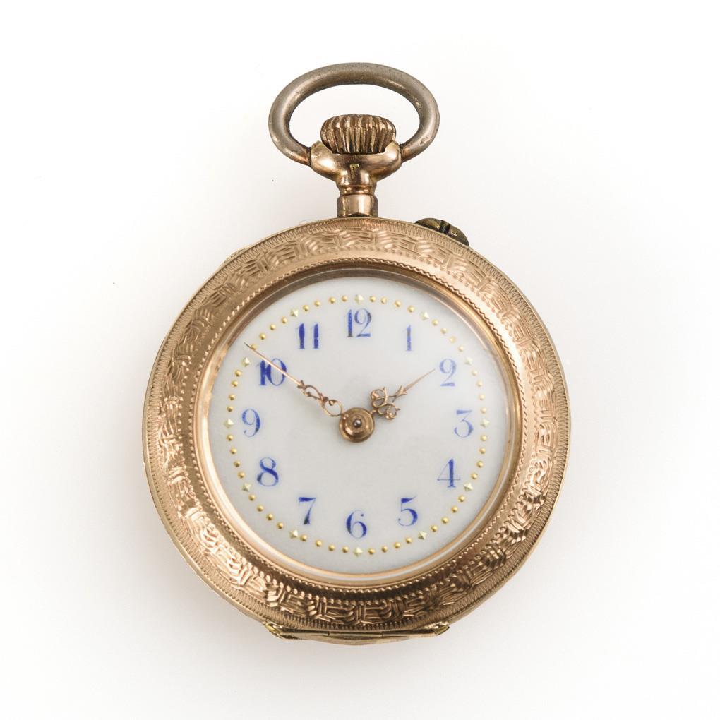 Goldene Damentaschenuhr in Etui.