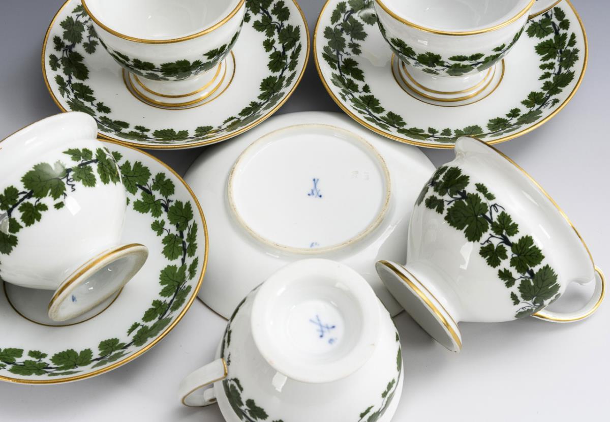 6 Tassen mit Weinlaubdekor. Meissen.