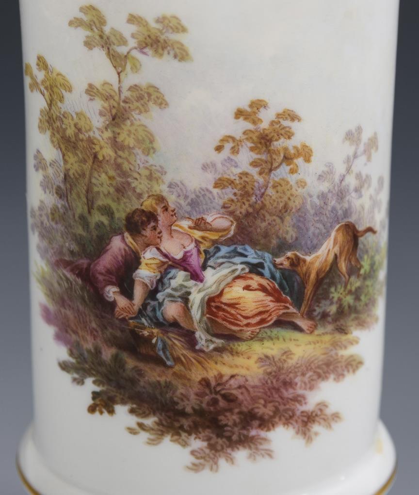 Meissen-Vase und Tischkartenhalter mit Watteau-Malerei.