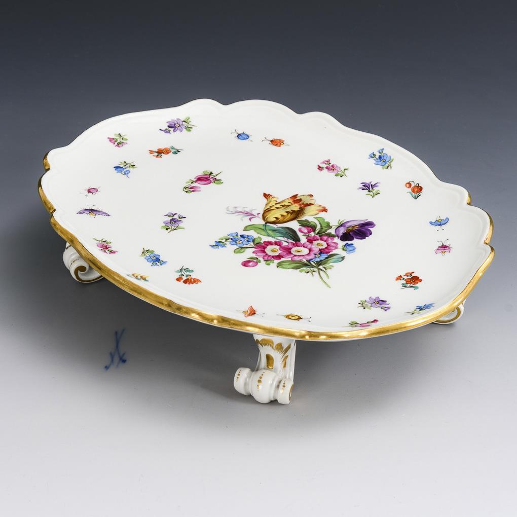 Aufschnittplatte mit Blumen- und Insektenmalerei. Meissen.