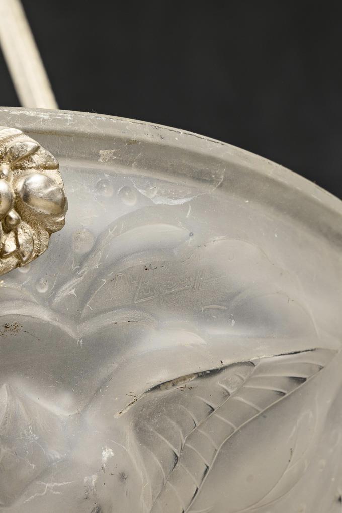Art-déco-Deckenlampe mit plastischen Spatzen. Muller Frères, Luneville.