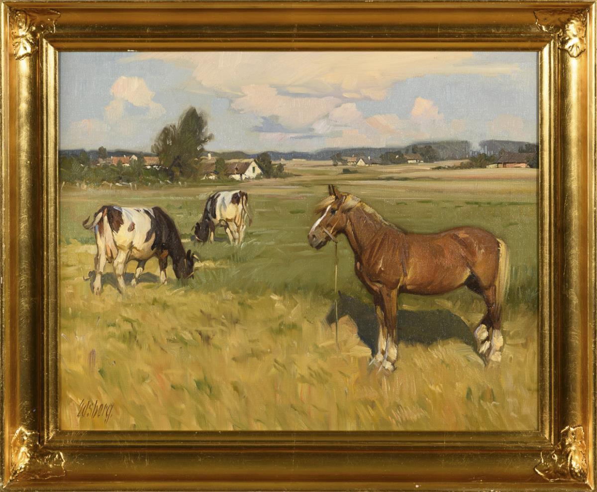 Pferde und Kühe auf der Weide