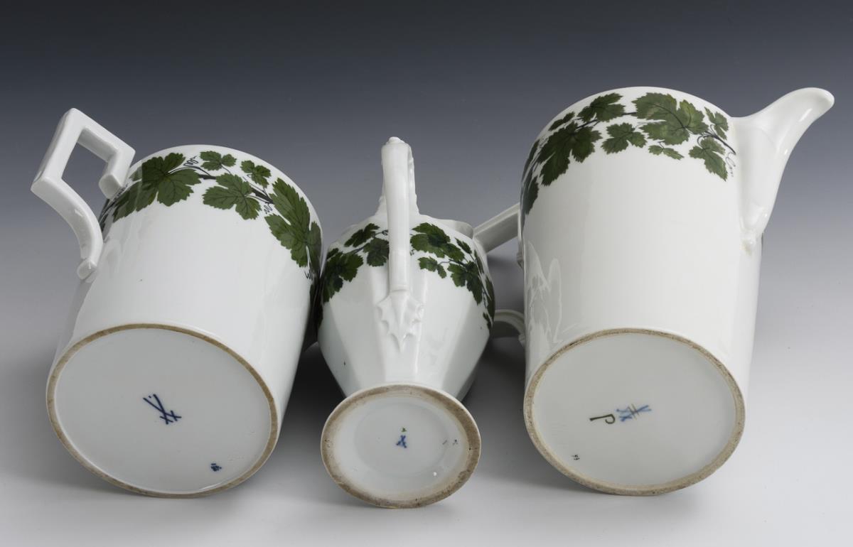 2 Kannen und 1 Milchkännchen mit Weinlaubdekor. Meissen.