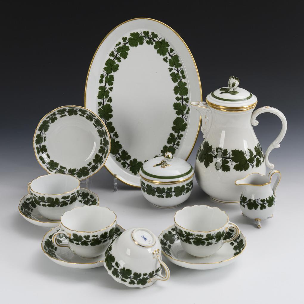 12 Teile eines Kaffeeservice mit Weinlaubdekor. Meissen.