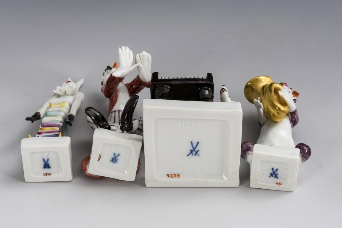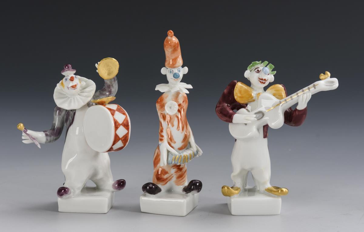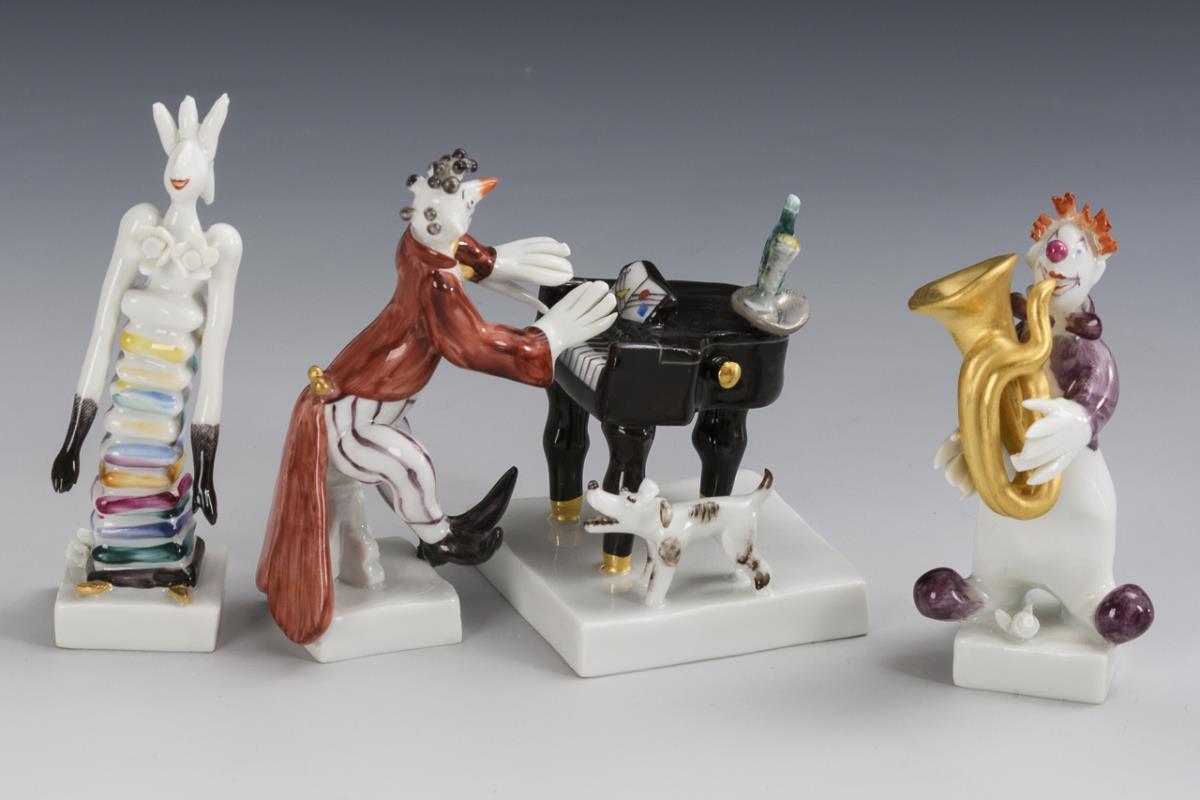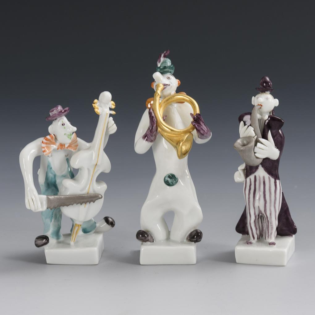 Schwertermarke, Ende 20. Jh., 1. Wahl. Monogrammiert. Modell-Nr. 60664, 60663, 60655, 60661, 60656, 60653, 60657, 60654, 60658 und 60650, aus der Serie der "14 Musikclowns". Entwurf: 1993-1994. STRANG, Peter(1936 Dresden - 2022)