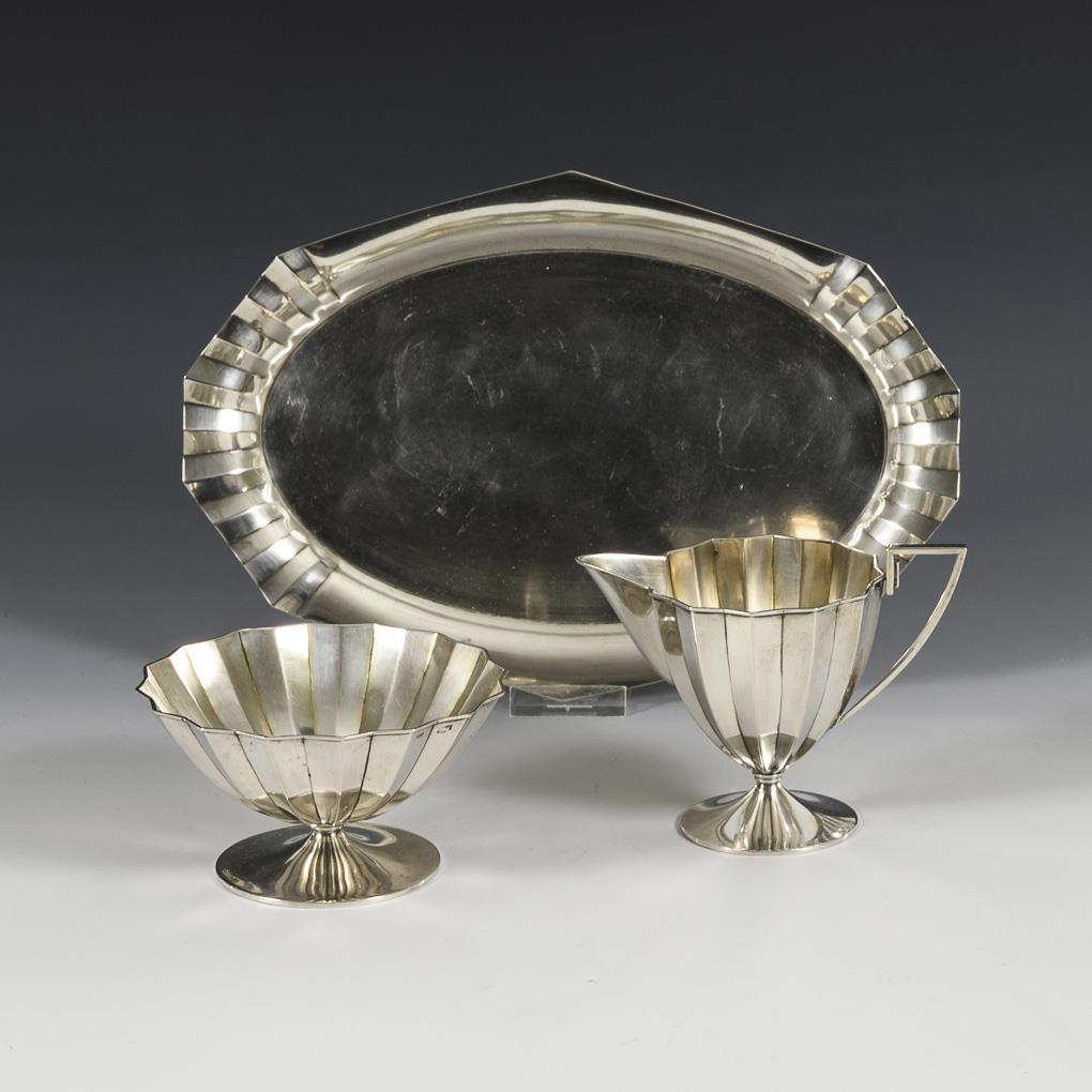 Zucker-Sahne-Garnitur auf Tablett, Art déco. Karl Söhnlein & Söhne, Hanau.