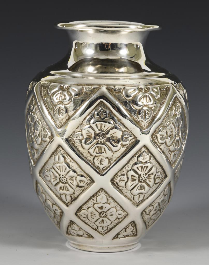Silbervase mit Blütenrelief.