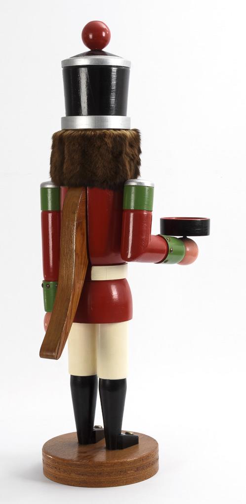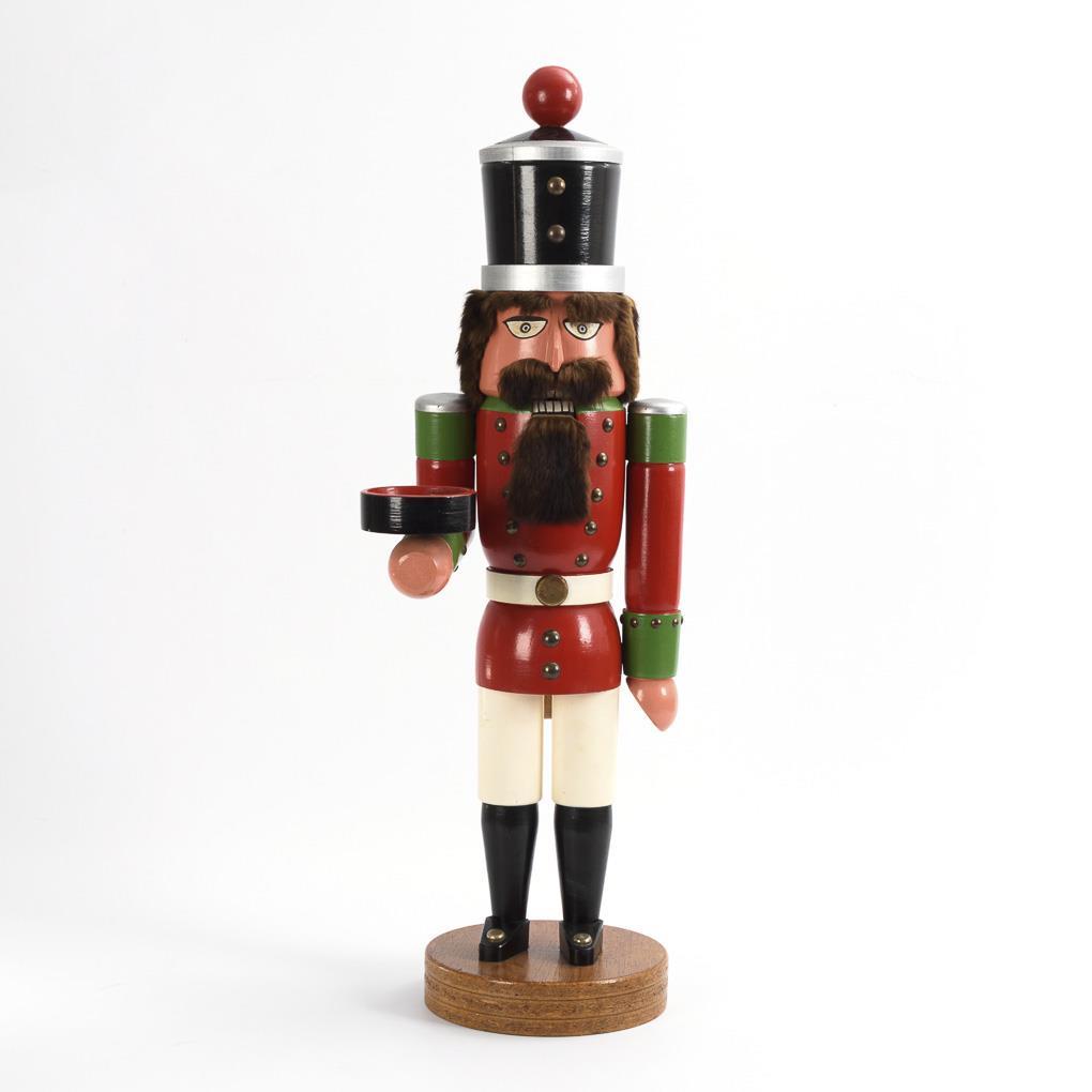 Nussknacker mit braunen Haaren und Bart aus echtem Fell. Leichte Altersspuren.