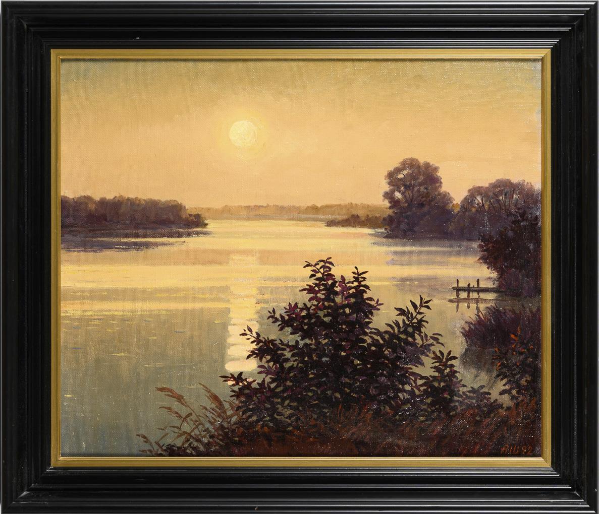 Russischer Maler: Sonnenuntergang am Wasser