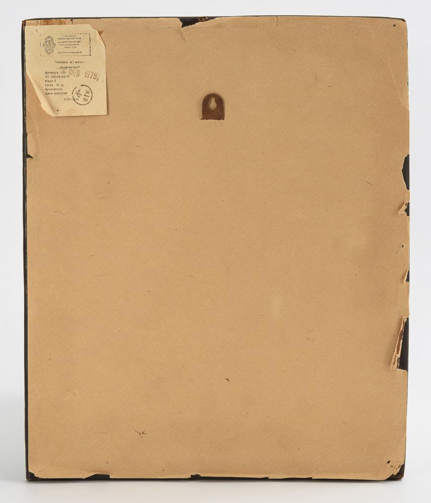 Kupferblech getrieben und punziert, auf Holzplatte montiert. Unbezeichnet, verso kyrillischer Klebezettel des Ministeriums von Aserbaidschan in Baku mit Datum 1979. 34 x 28 cm.