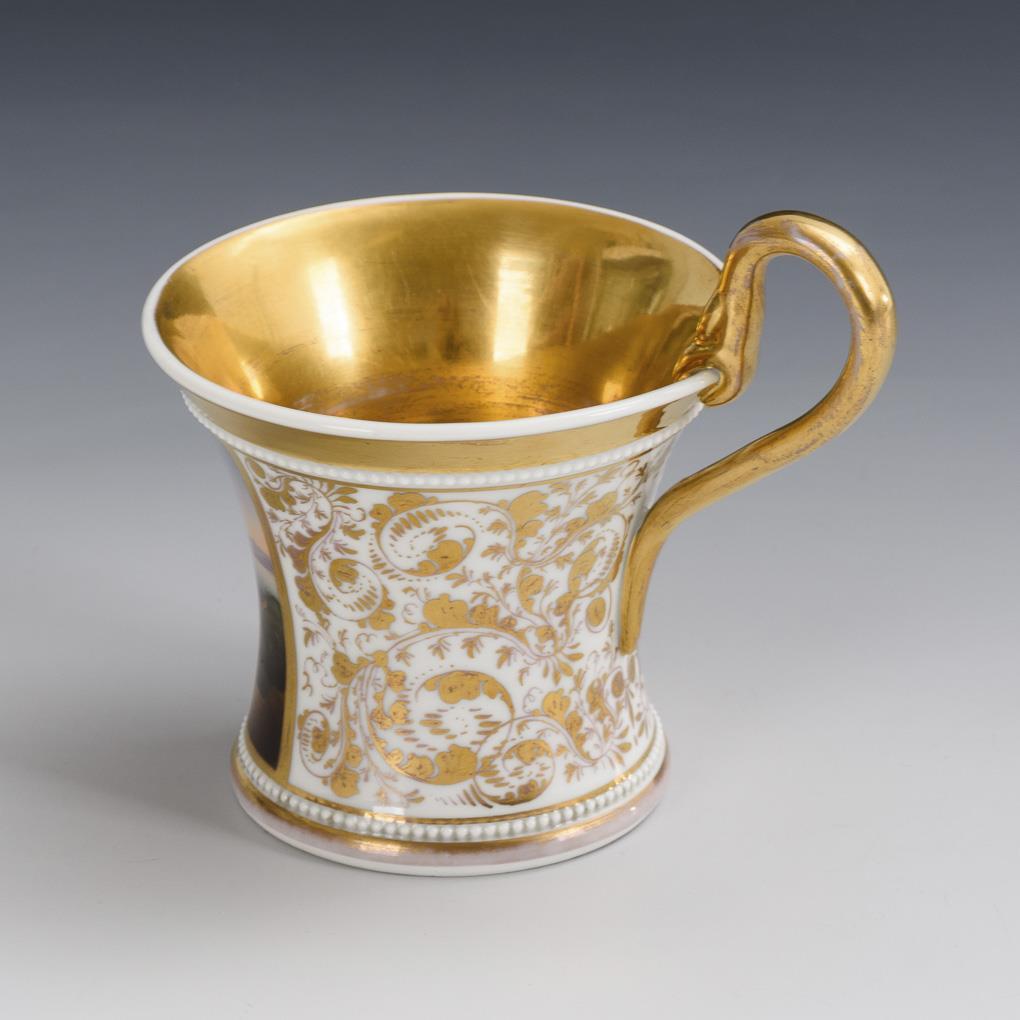 Biedermeier-Tasse mit Jäger. KPM Berlin.