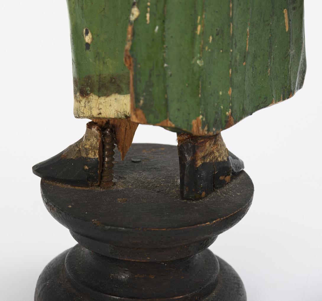 Weichholz polychrom gefasst, Sockel Eiche ebonisiert. Ende 18. Jh. H 19 / 23 cm.