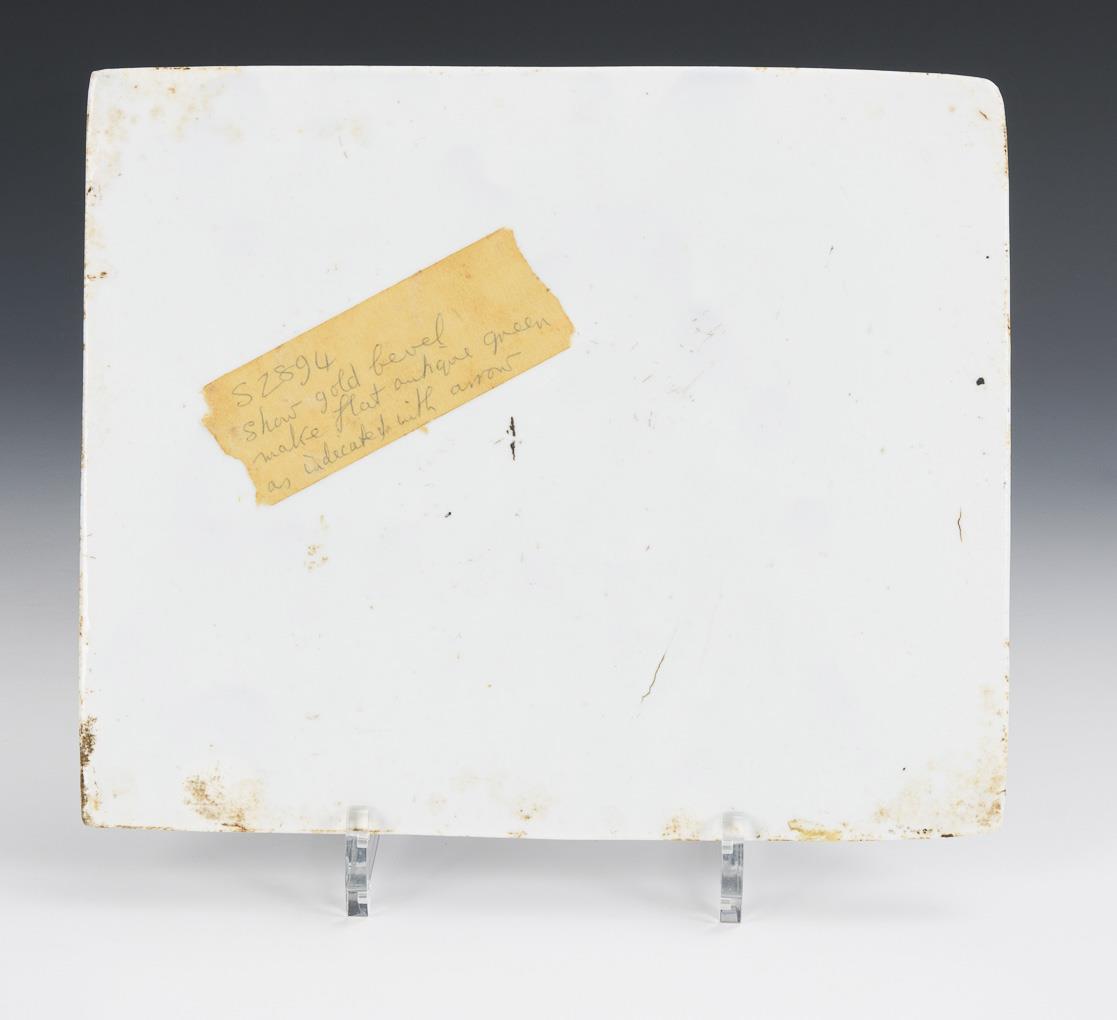 Farbige Malerei auf weißem Grund. Platte ca. 21,5 x 25,5 cm, Rahmen 35,5 x 40 cm.