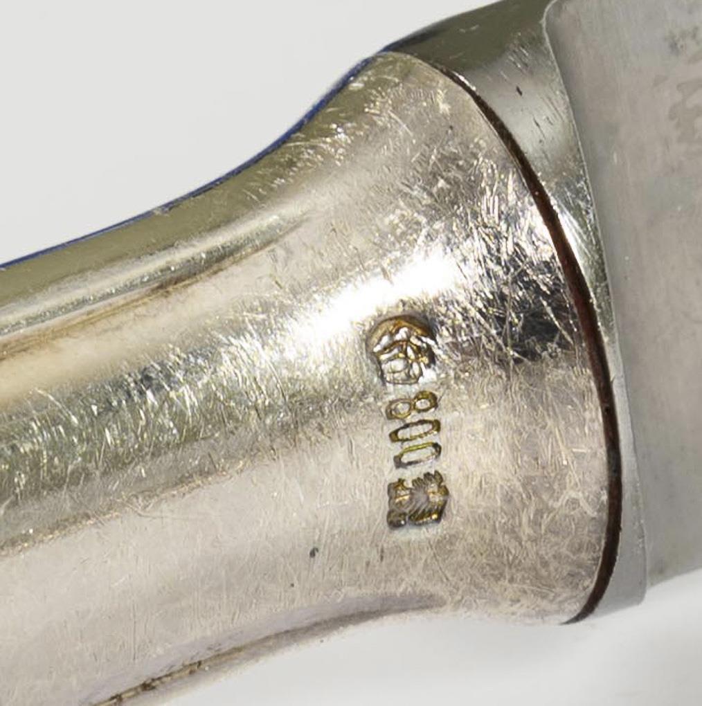 Silber. L 15,5 - 32 cm. Ca. 3750 g (ohne Messer, vom Kunden gewogen).