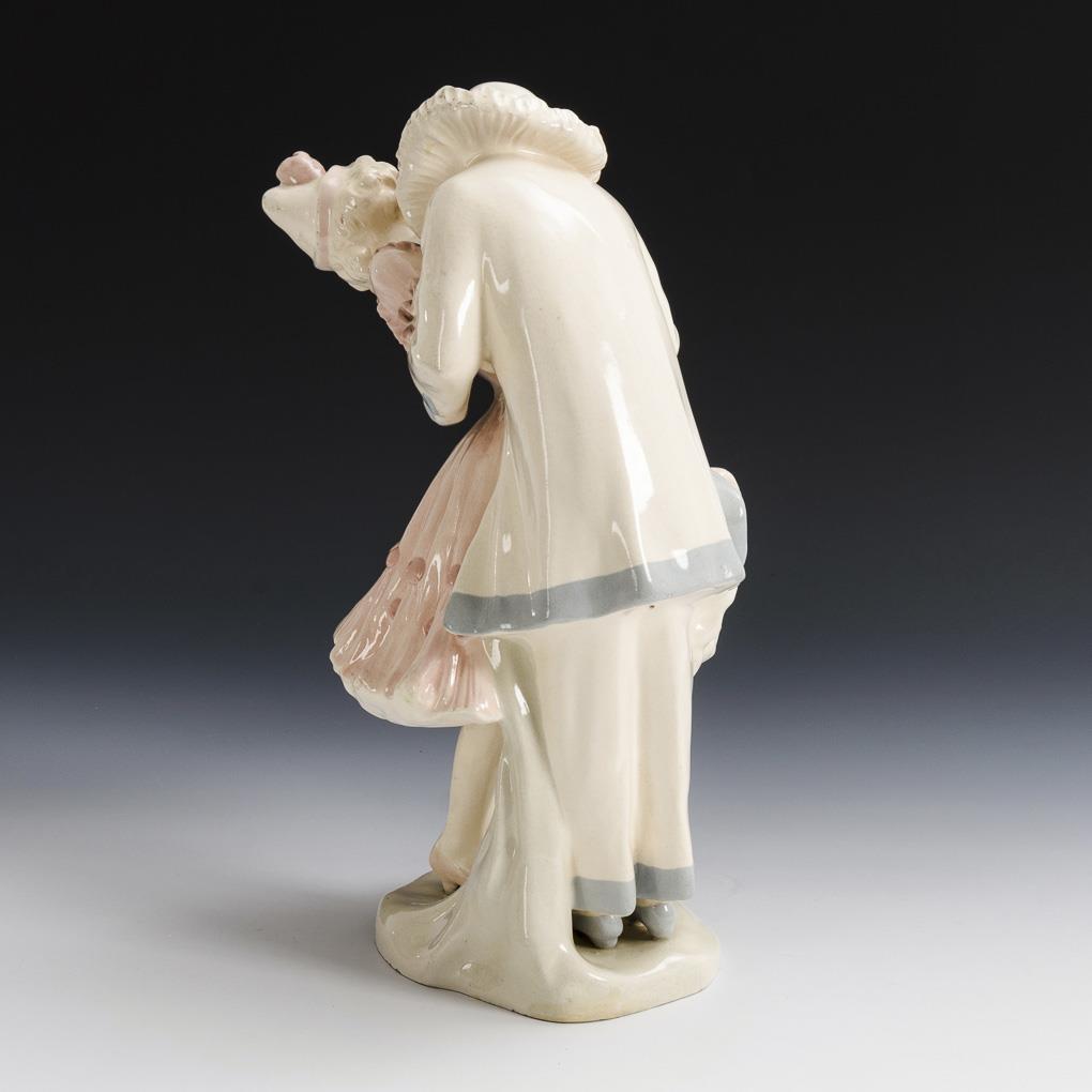 Zum Kuss ansetzender Pierrot und abwehrende Colombine. Restaurierungen an linkem Arm und Wade der Colombine, Halskrause und Sockelrand, partiell minimale Randchips.
