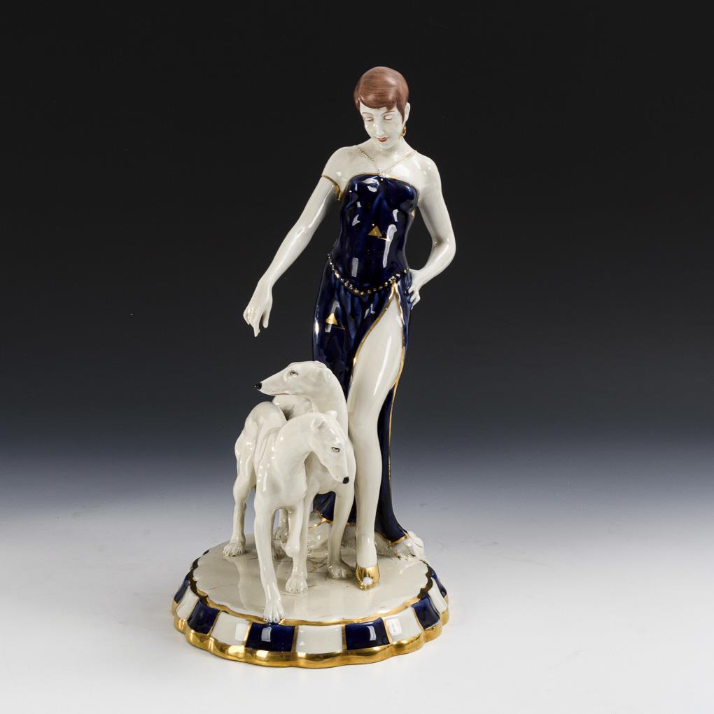 Dame mit Windhunden. Royal Dux.