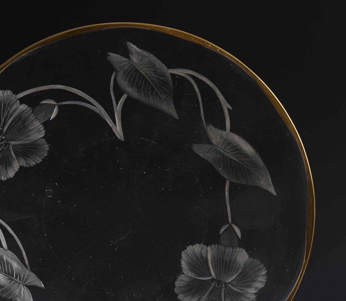 Farbloses Glas, Goldstaffage. 4 Schalen (H 6 cm), 4 Unterschalen (Ø 15,5 cm).