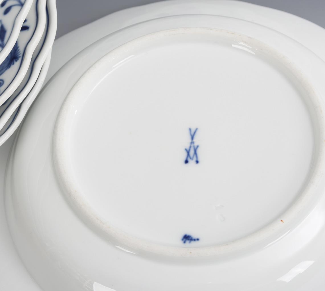 7 Zwiebelmuster-Suppenteller. Meissen.
