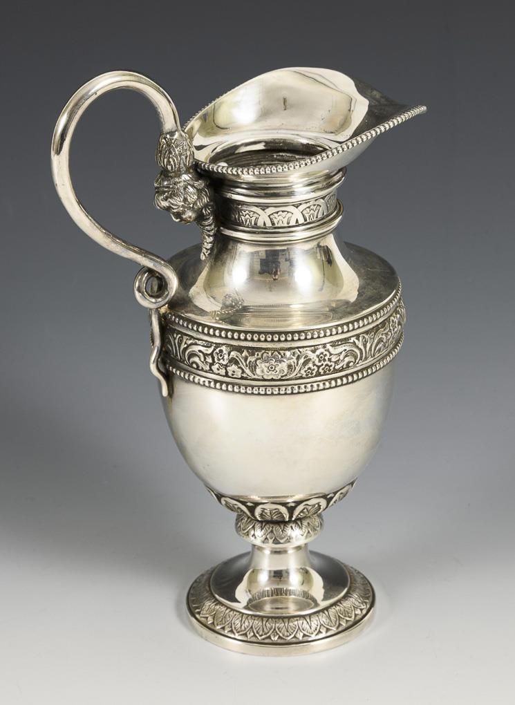 Schwere, im Stil des Klassizismus gestaltete Kanne in Balusterform.