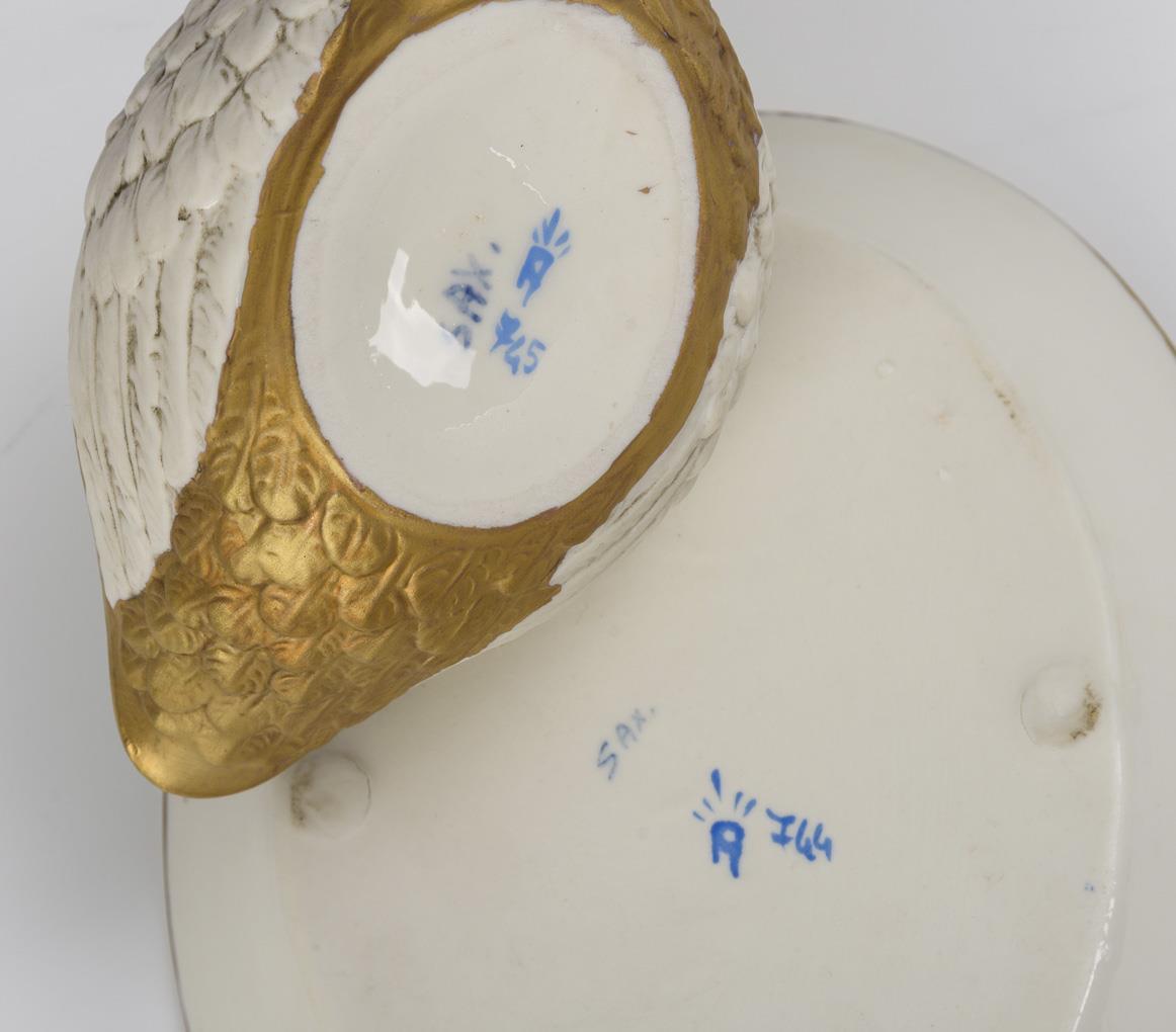 Kleine Sauciere in Form eines Schwanes, teils mit Goldfond.