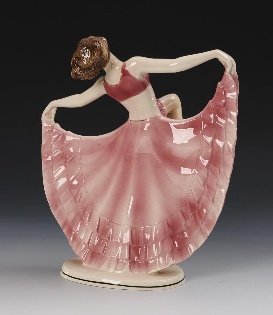 Art-déco-Tänzerin in roséfarbenem Kleid. Hertwig & Co., Katzhütte.