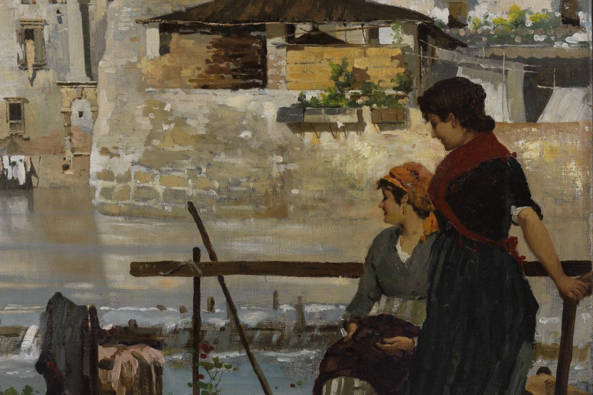 Italienische Stadt mit Wäscherinnen