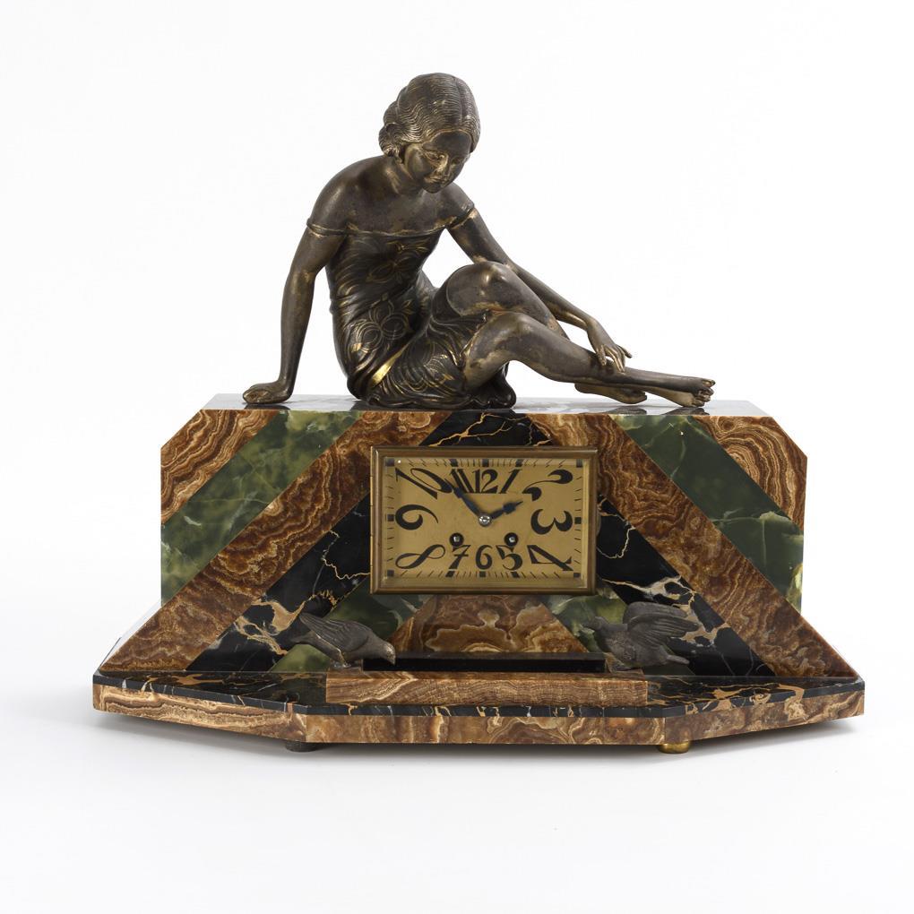 Art-déco-Uhr mit Frauenfigur.
