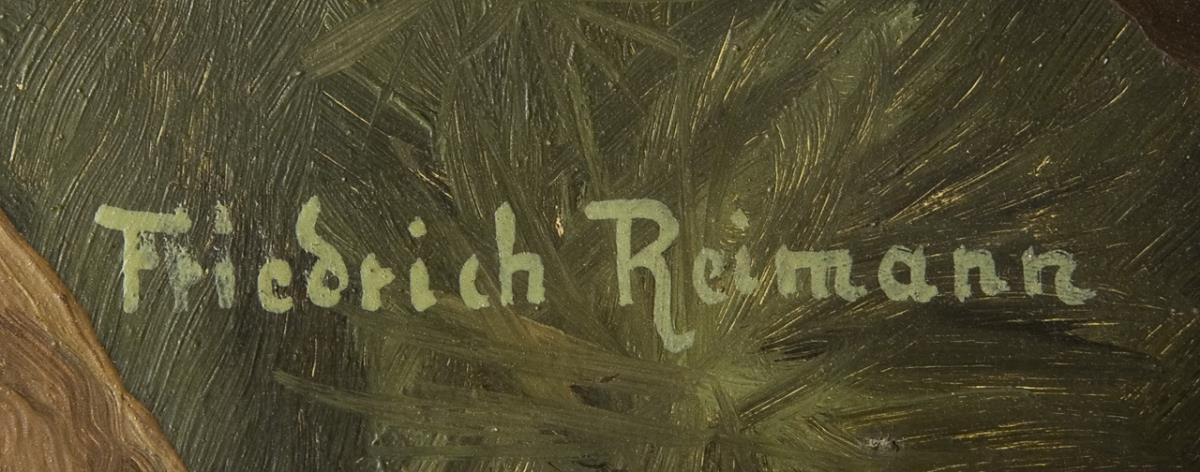 Reimann, Jagd- und Tiermaler, studierte an der Akademie in Dresden. Seit 1908 in Zeulenroda ansässig, ab 1938 regelmäßig auf Ausstellungen im Haus der Kunst in München vertreten. Seine Werke fanden in zahlreichen Reproduktionen Verbreitung * Partnerauktion Bergmann.
