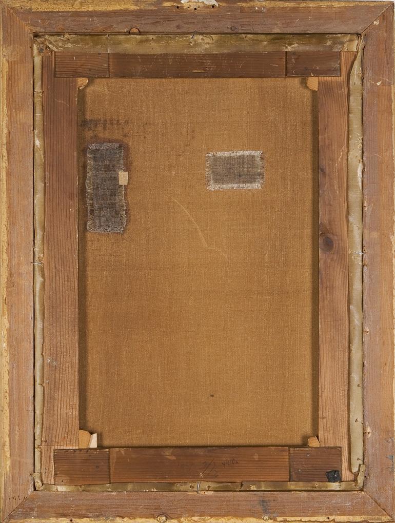 Profilierter Goldrahmen. Rückseitig zwei Flicken.