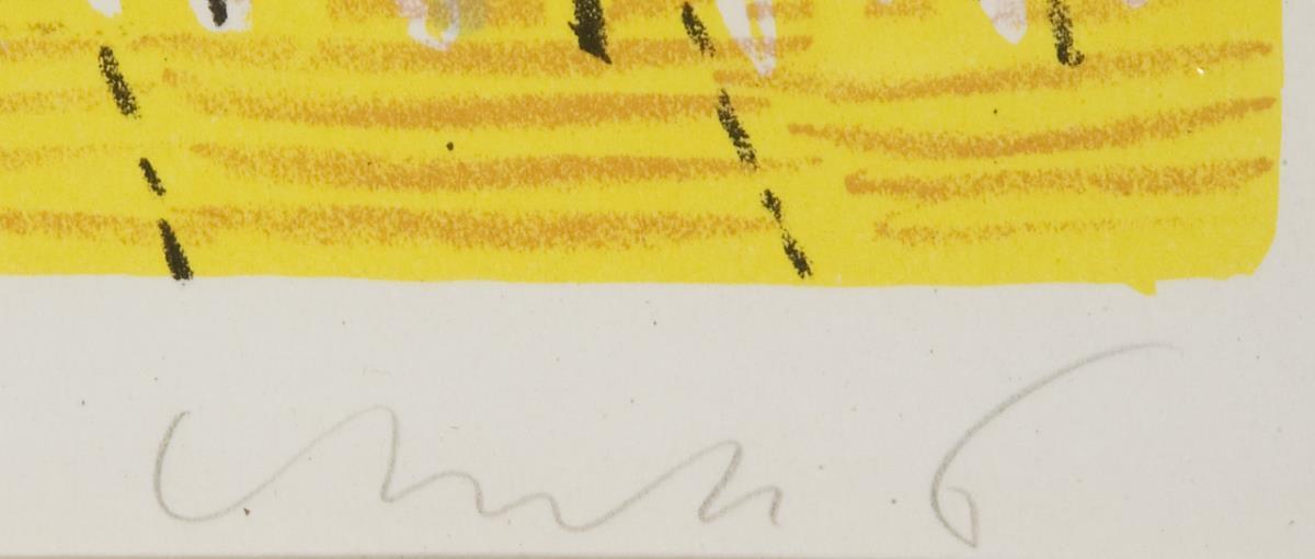 Blatt aus der Mappe "Quadraturen" zum 10jährigen Jubiläum der Edition Volker Huber, Offenbach am Main 1979, nummeriert: 411/1500. Passepartout, verglaster Profilrahmen.