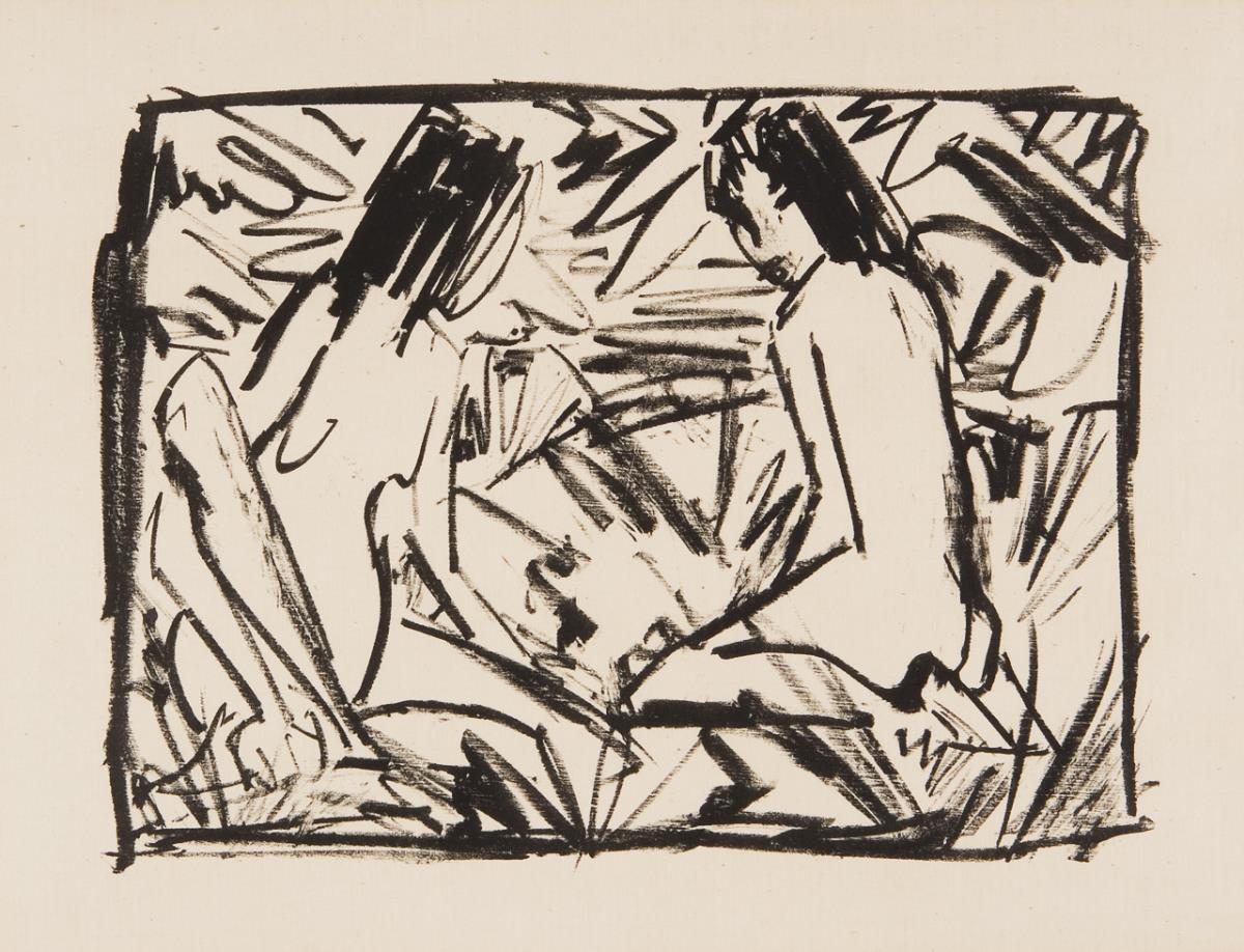 Rückseitig Nachlass- und Monogrammstempel und von Erich Heckel (1883-1970) signiert. Außerhalb der Buchauflage von Kurt Pfister "Deutsche Graphiker der Gegenwart", Leipzig 1920, einer von etwa 50 separaten Abzügen, Passepartout-Front. Seitlich am Blattrand kleiner Riss, Rand am Passepartout-Ausschnitt gebräunt, an den Rändern montiert.