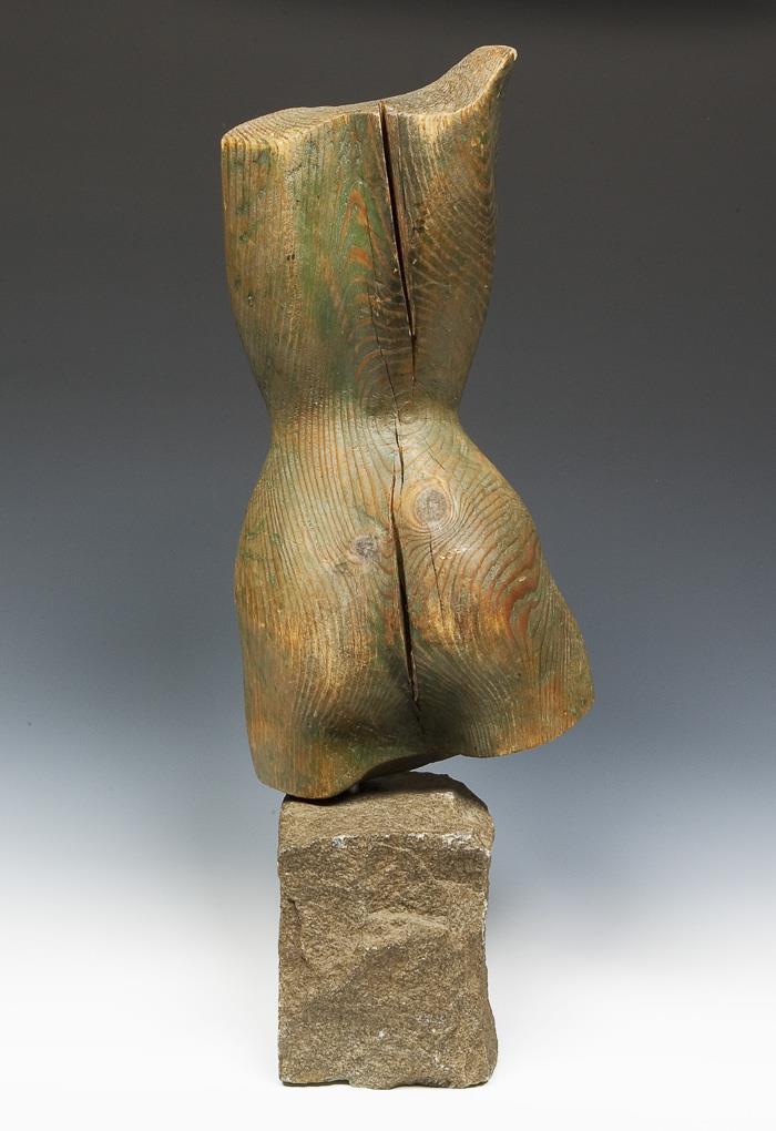 Vollplastisch geschnitzt. Wohlgeformter schlanker Körper mit schmaler Taille. Natur-Granit-Plinthe mit Klebezettel am Boden, kyrillisch beschriftet, datiert: 1952. Rückseitig vertikal gerissen, frontal Riss restauriert.