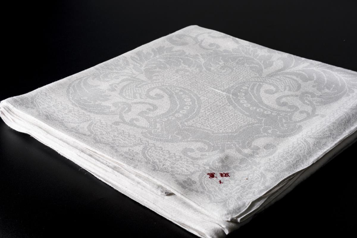 Weißer, weicher Leinendamast. 300 x 152 cm.