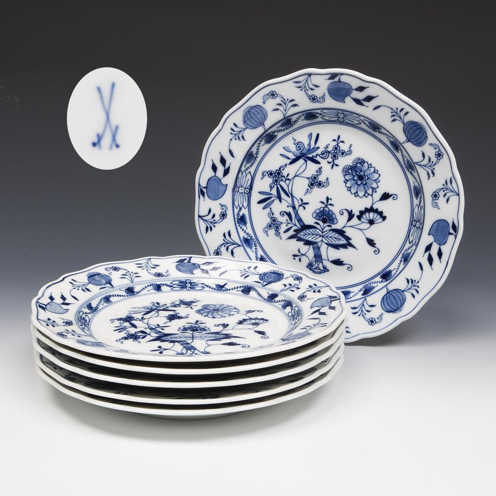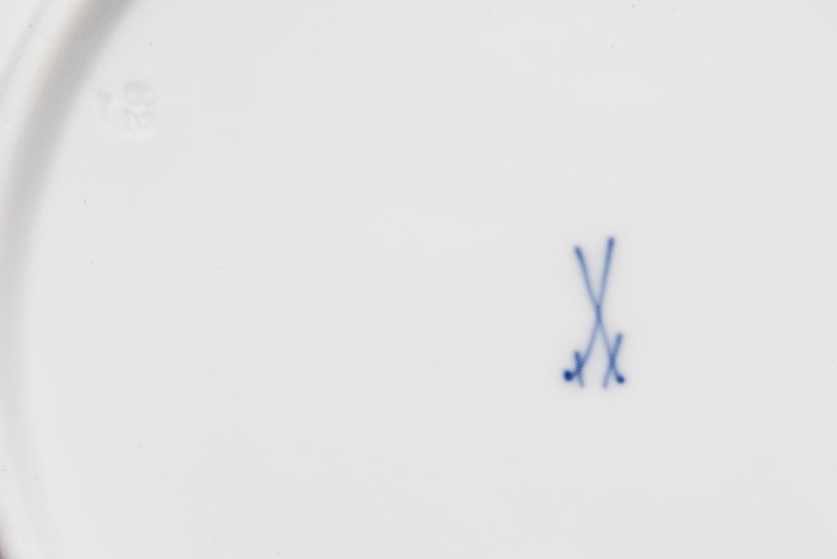 Form "Neuer Ausschnitt", kobaltblaue Unterglasurmalerei, Zwiebelmusterdekor. Dekor-Nr. 800101. Pressmarken, Malermarken, Schwertermarken.