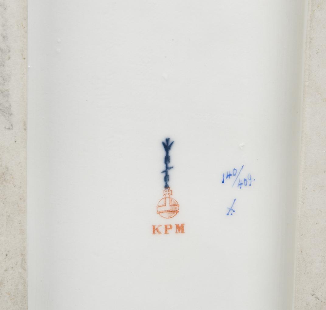 Modell von Karl Himmelstoss 1910. Farbig bemalt, blaue Zeptermarke, rote Reichsapfelmarke, Ritzmarke, Pressmarke, Malermarke. Ein Ohr, Zügel partiell restauriert, Zügel bestoßen, von unten geklebt.