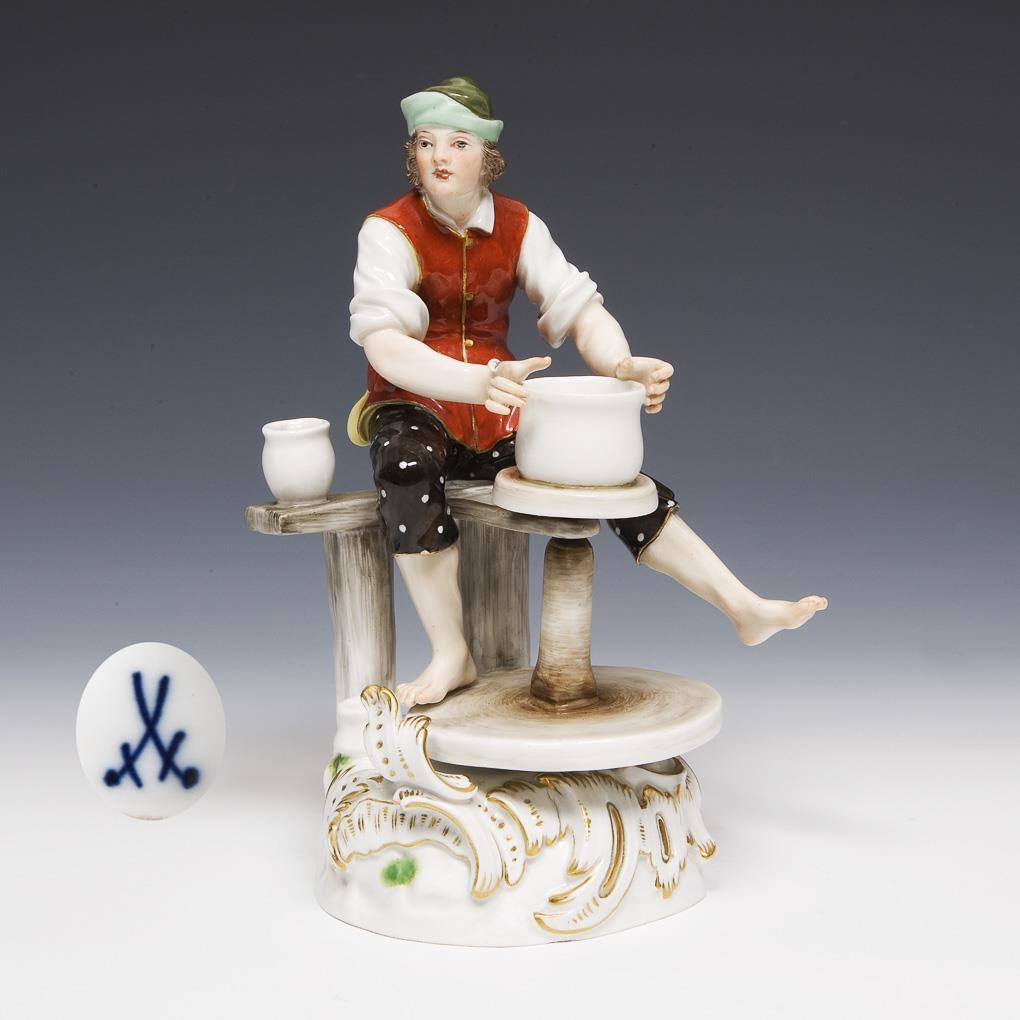 Modell von Johann Joachim Kaendler und Peter Reinicke 1750. Farbig bemalt, gold staffiert. Ritzmarke, Pressmarke, Malermarke, Schwertermarke. Ein Finger bestoßen.