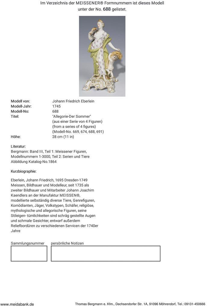 Eberlein, Bildhauer und Modelleur, seit 1735 als zweiter Bildhauer und Mitarbeiter Kaendlers an der Manufaktur * Partnerauktion Bergmann.