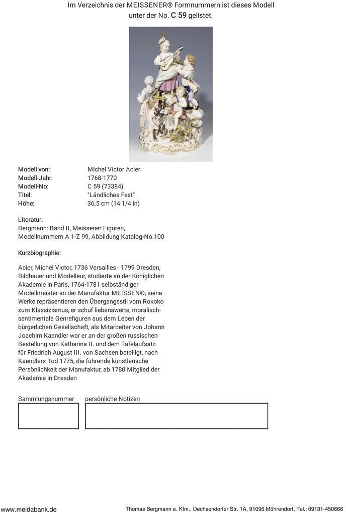 Acier, Bildhauer und Modelleur, studierte an der Akademie in Paris, 1764-1781 selbständiger Modellmeister in Meissen * Partnerauktion Bergmann.