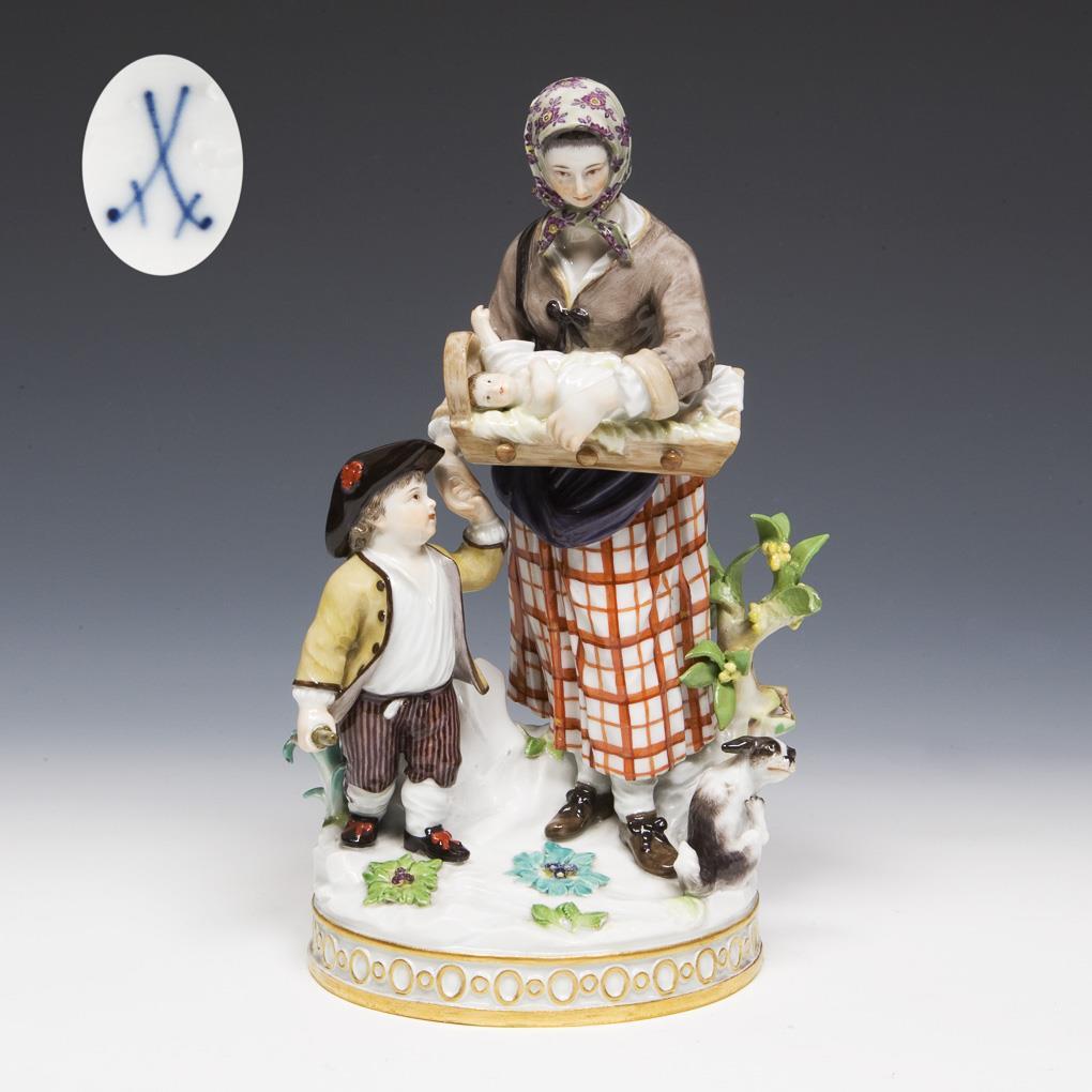 Figurengruppe: Bettlerin mit Kindern. Meissen.