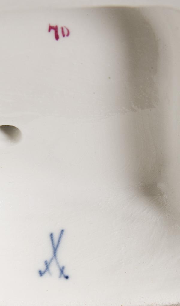 Modell von Michel Victor Acier 1775. Farbig bemalt, gold staffiert, Ritzmarke, Pressmarke, Malermarke, Schwertermarke. Blättchen bestoßen, rückseitig kleiner Brandriss.
