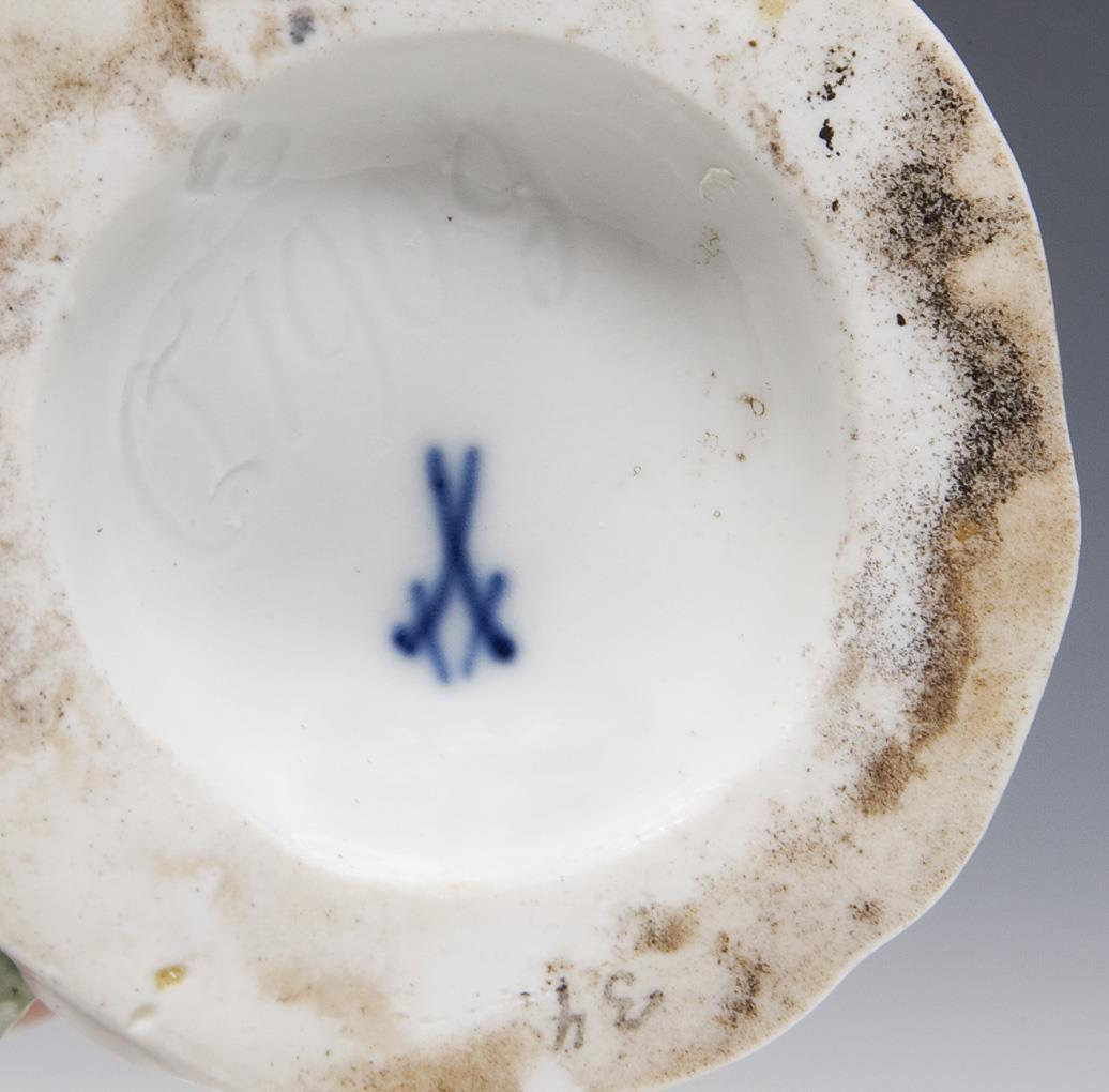 Modell von Hugo Spieler 1897-1898. Aus einer Serie von 25 Trachtenfiguren. Farbig bemalt. Ritzmarke, Pressmarke, Malermarke, Schwertermarke. Ein Unterarm mit Hand, ein Fuß restauriert, Pfeifengesteck, Sockelrand von unten minimal bestoßen, Stab ergänzt, der restaurierte Unterarm geklebt.