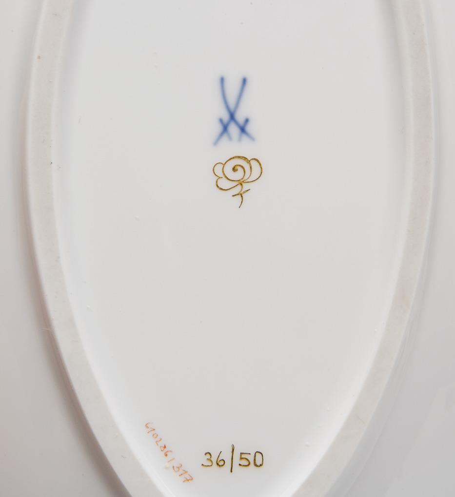 Aus der "Rosen-Edition", limitiert, nummeriert: 36/50. Dekor-Nr. 610286, Modell-Nr. 290. Farbig bemalt. Pressmarken, Malermarke, Schwertermarke, goldenes Signet.