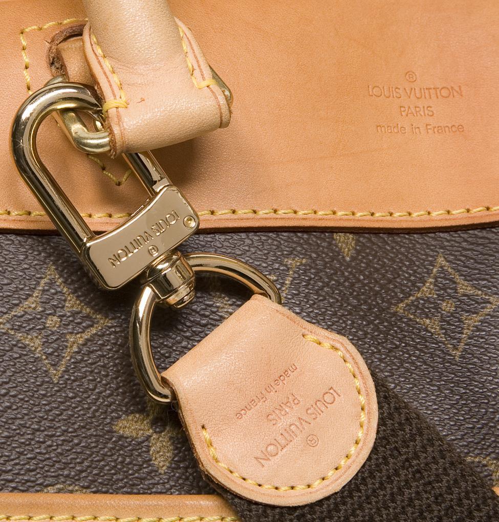 Paris, Made in France, Modell Alizé 24 Heures NM, Modell-Nr. M 41399. Innen geprägter Leder-Datum Code: MB 0045 (in der 4. Kalenderwoche in Frankreich 2005 hergestellt). Classic LV-Monogramm Canvas, Leder-Besatz. Zwei Hauptfächer mit Zwei-Wege-Reissverschluss, außen ein großes Einsteckfach, Leder-Tragegriffe. Abnehmbarer, verstellbarer Textil-Schultergurt mit Lederbesatz. Abwaschbares helles Innenfutter, in jedem Taschenteil je ein großes Einsteckfach. Lederprägung: Louis Vuitton, Paris, Made in France. Handgepäckgröße, in der Hand, über der Schulter oder diagonal am Körper zu tragen. Wenig getragen, guter Zustand.